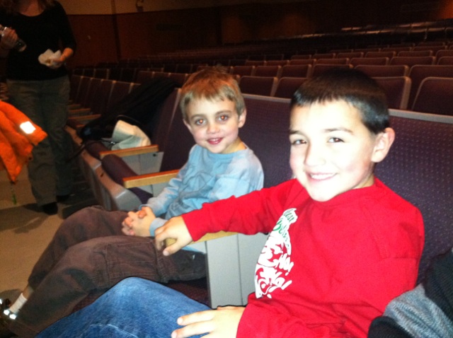 We had to wake Leah up super early from her nap to get to church an hour early to get the closest seats in the house for our little man's acting debut.